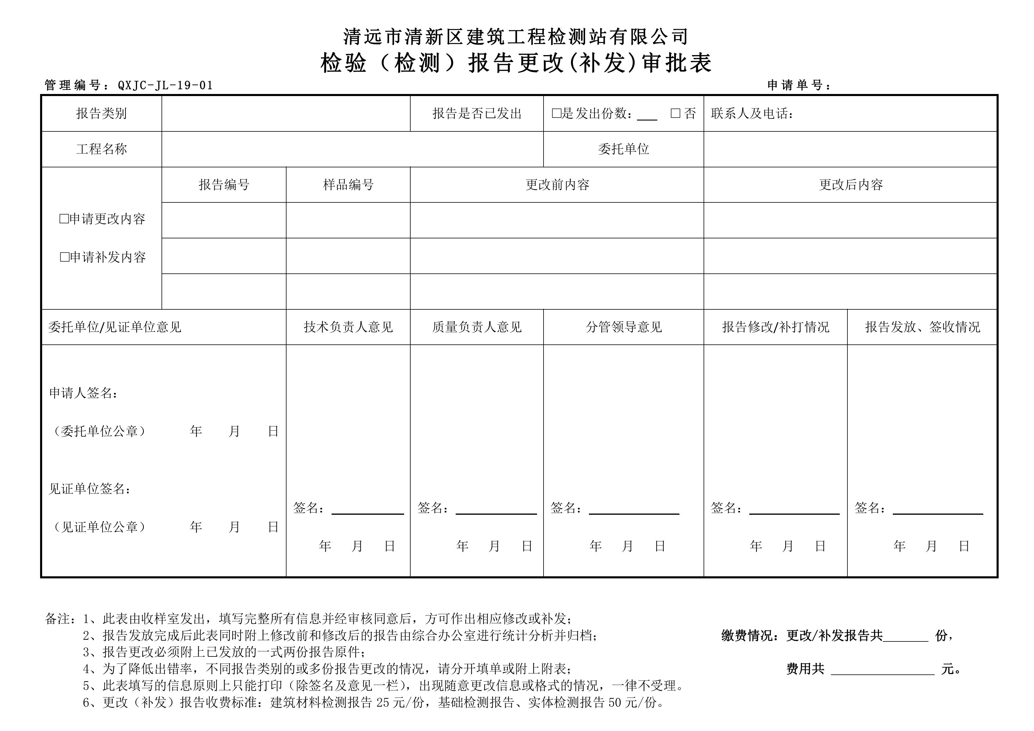 QXJC-JL-19-01 檢驗(檢測)報告更改(補發(fā))審批表