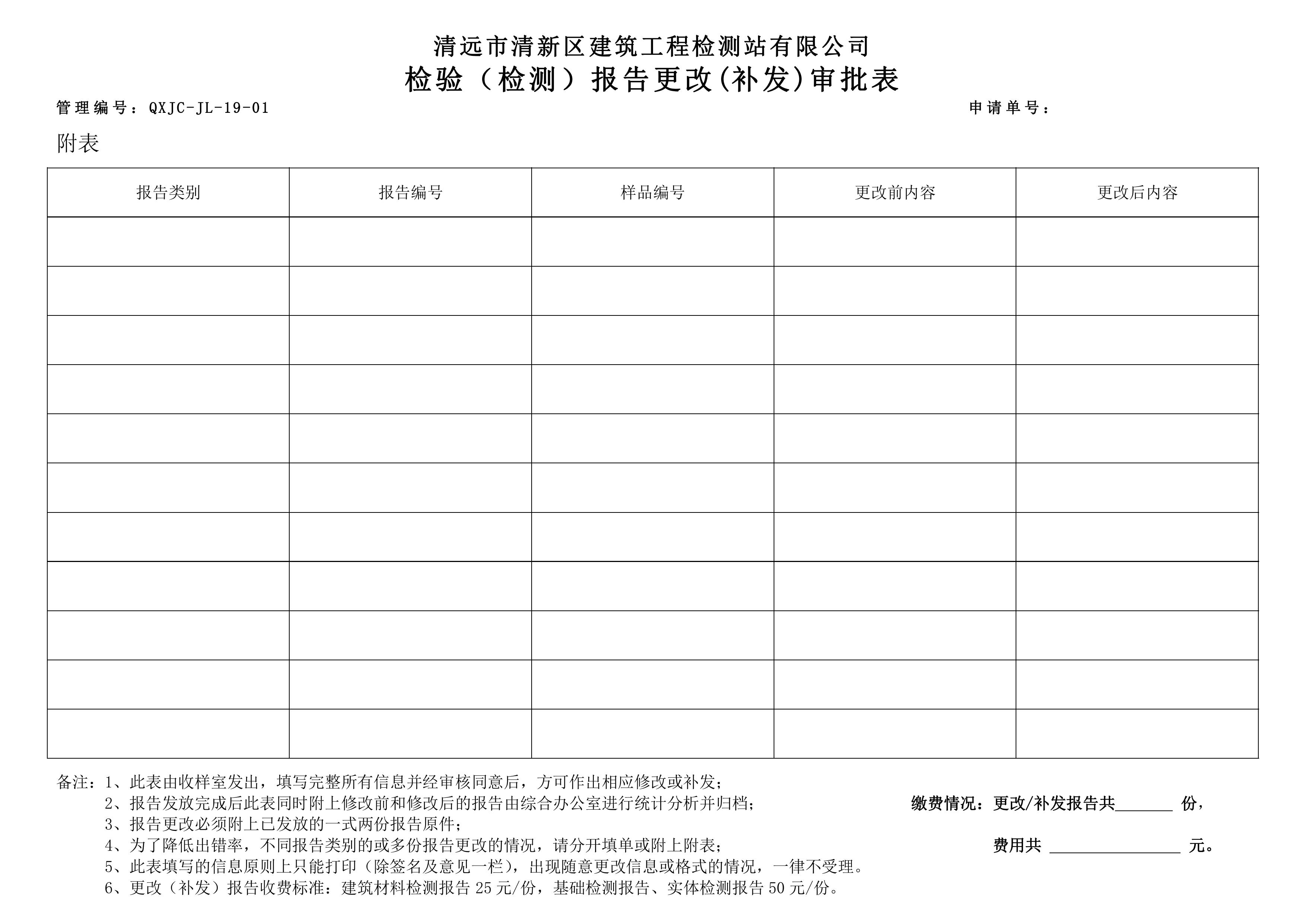 點此下載QXJC-JL-19-01 檢驗(檢測)報告更改(補發(fā))審批表